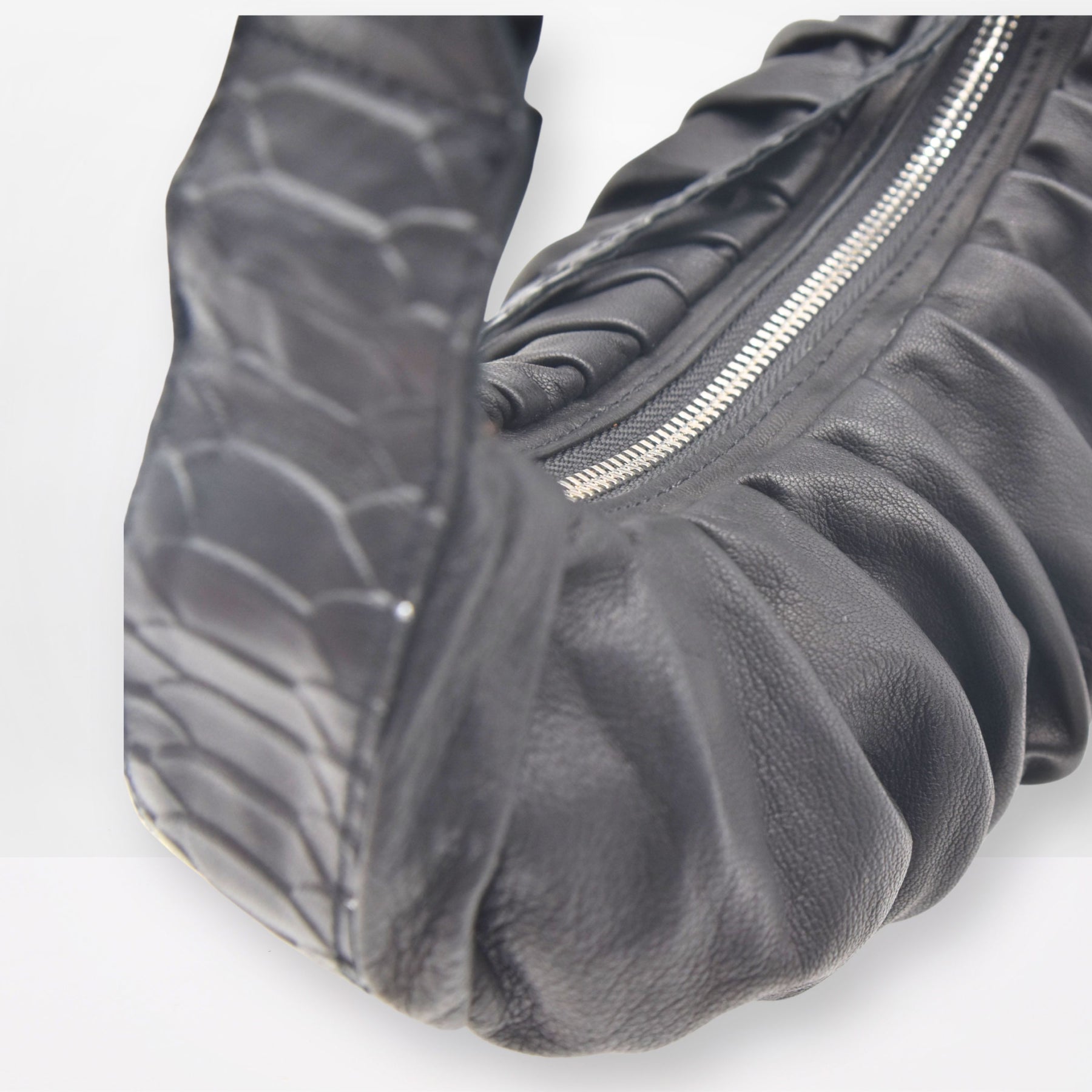 I wanted the leather to speak through pleats, texture, and the kind of detailing you only notice up close. It’s the bag that makes even the simplest look feel intentional.